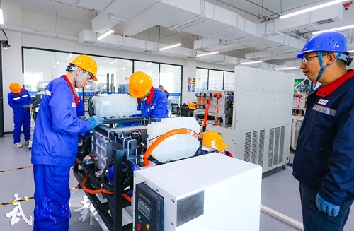 武威職業(yè)技術(shù)大學(xué)學(xué)生在氫動(dòng)力系統(tǒng)實(shí)訓(xùn)室實(shí)操